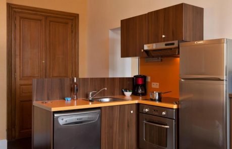 Chaque appartement au Château bénéficie de sa kitchenette équipée et de salle de bain privative.